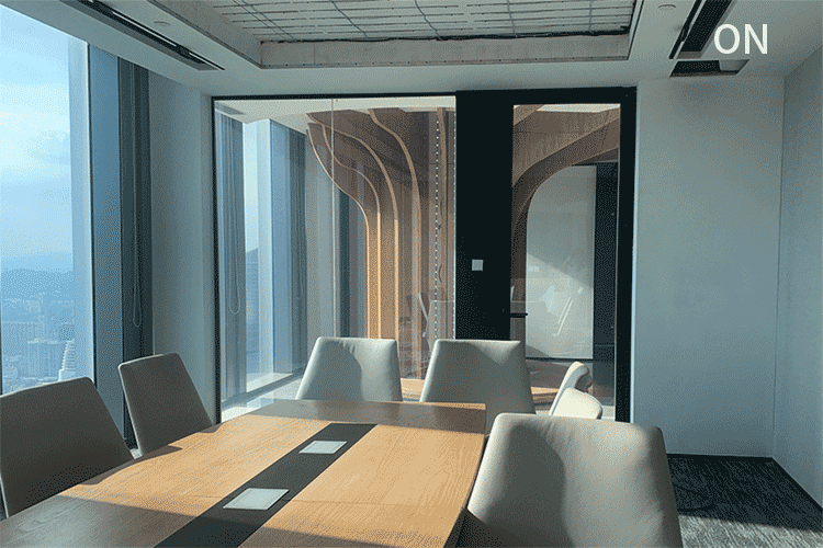When you need your glass wall to be a wall partition,Just power off smart films,then glass wall will become opaque.