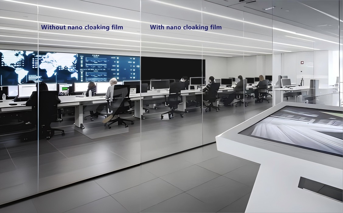Cloaking Technology  is an architectural film for glass walls that obscures digital screens to outside view. It acts as a smart shield to ensure data privacy, while providing the peace of mind to collaborate freely in any working environment. This is a breakthrough that will unleash space design in the networked modern world.  You have to see it to believe it.